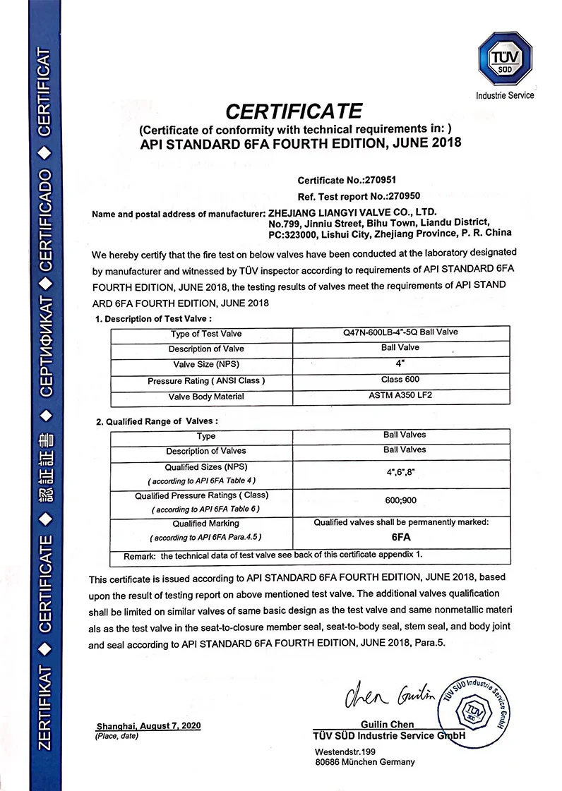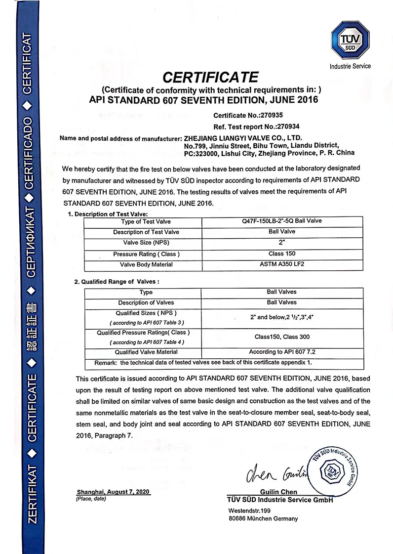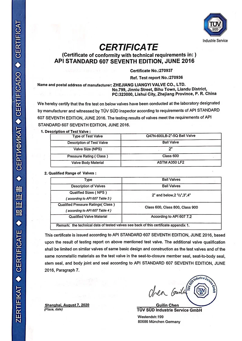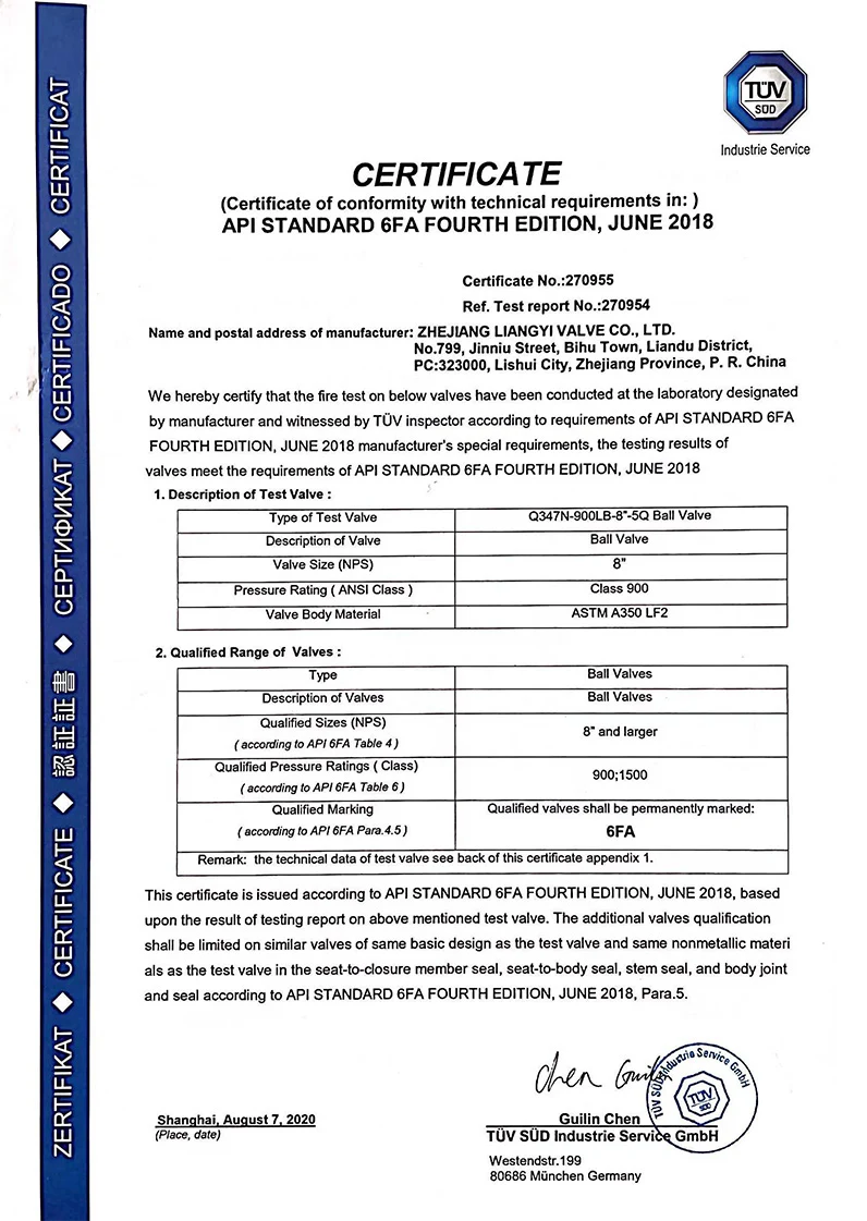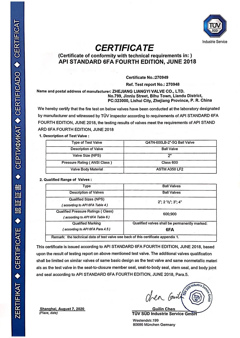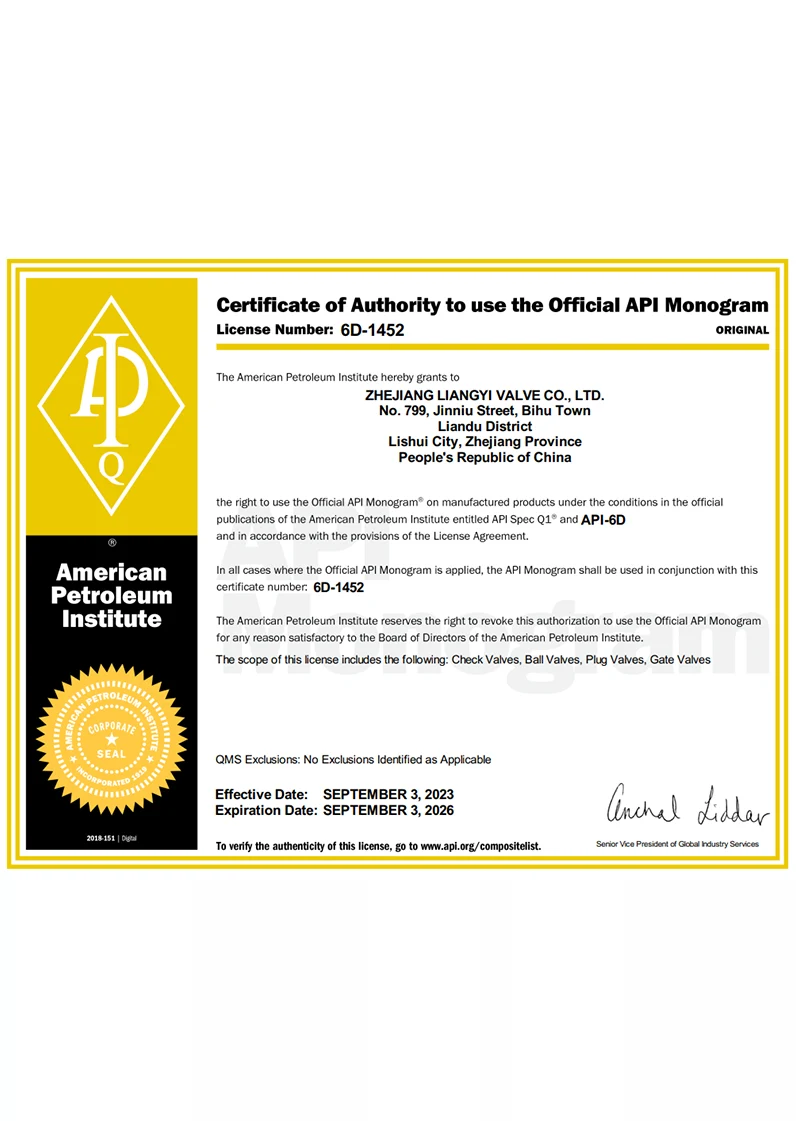 Mednarodne avtoritativne organizacije so LYV®️ prepoznale za svoje upravljanje kakovosti in uspešnost izdelka, kot so ISO9001 , API607, API6FA, API-6D, CE.