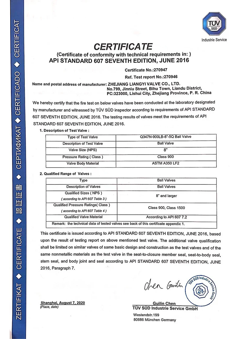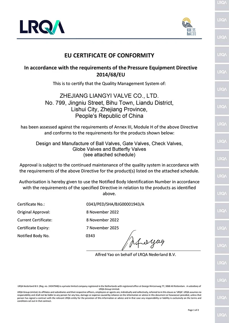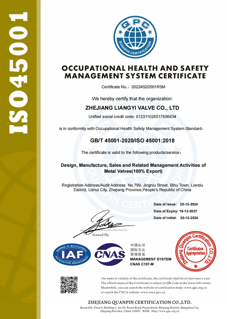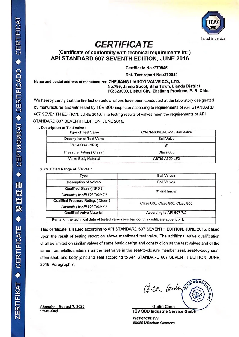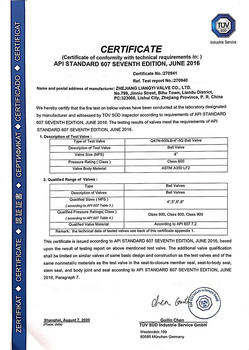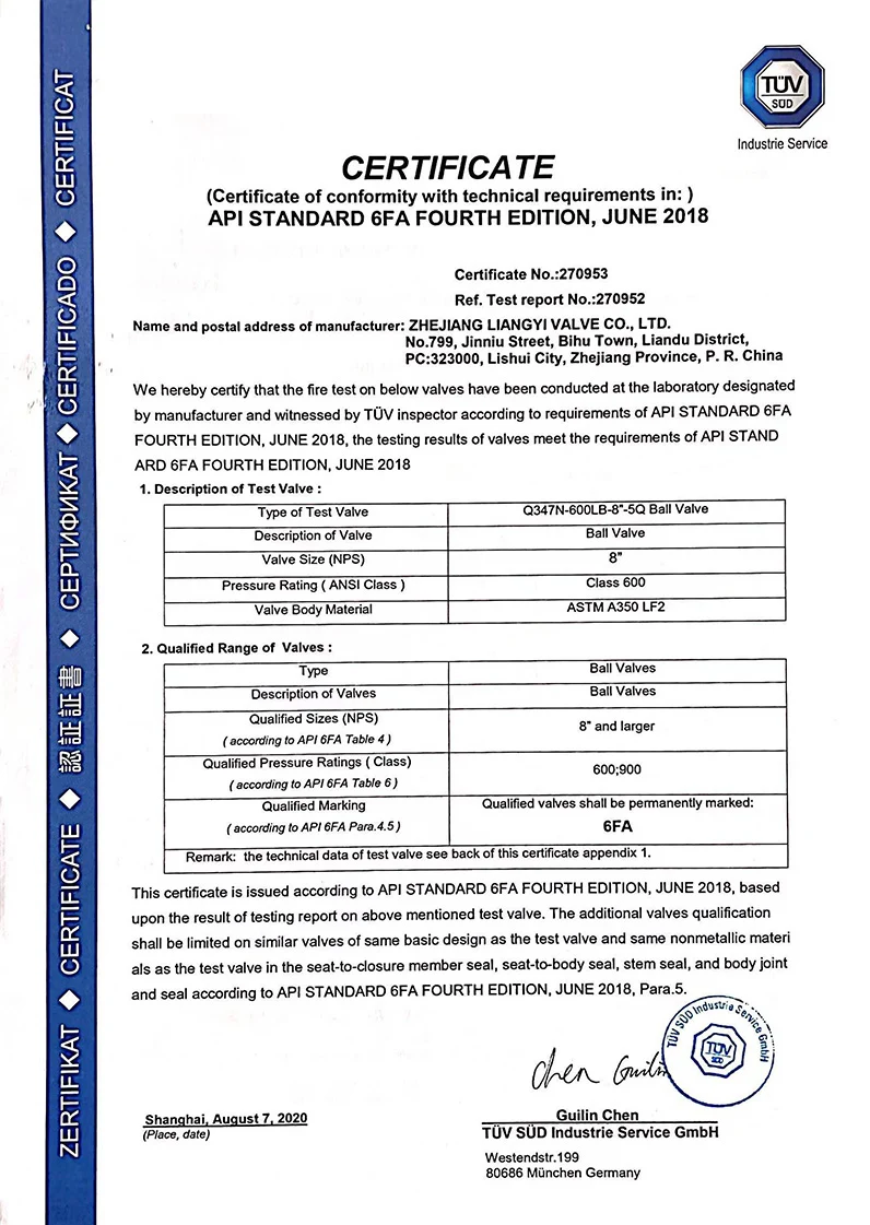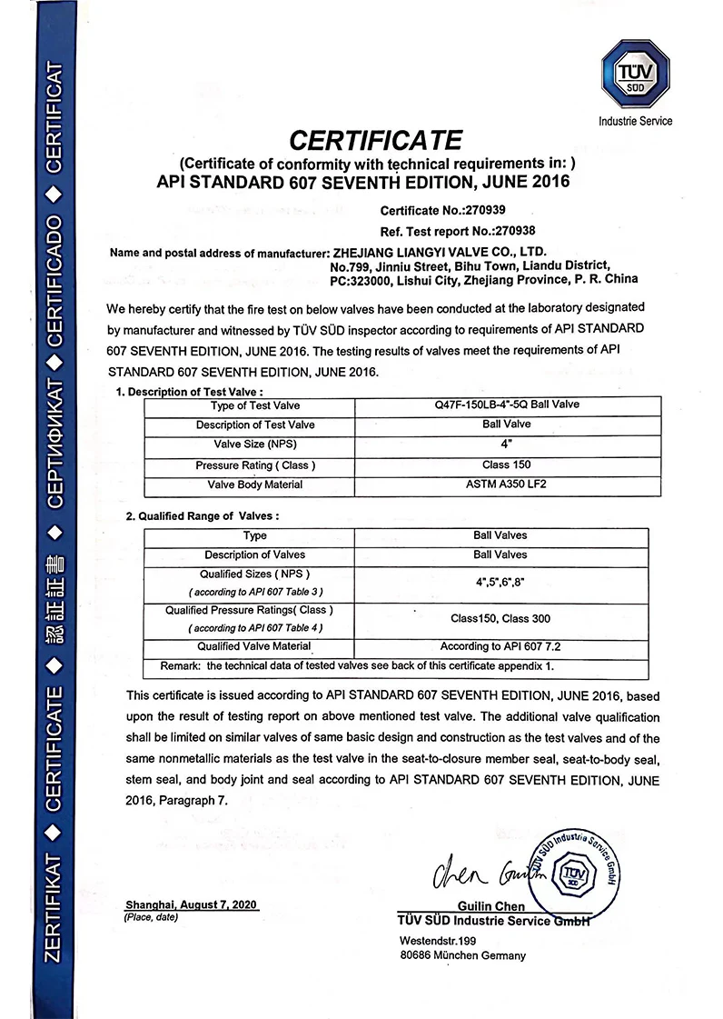 Mednarodne avtoritativne organizacije so LYV®️ prepoznale za svoje upravljanje kakovosti in uspešnost izdelka, kot so ISO9001 , API607, API6FA, API-6D, CE.